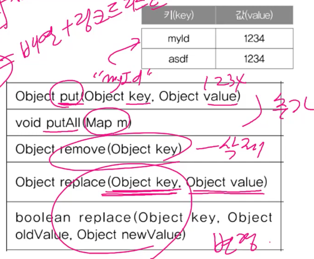 replace(Object key, Object value)는 기존에 지정된 키에 새로운 값을 저장하는 것이다 .