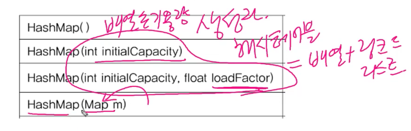 HashMap(in initialCapacity)생성자로 배열의 초기용량을 지정해줄 수 있다.