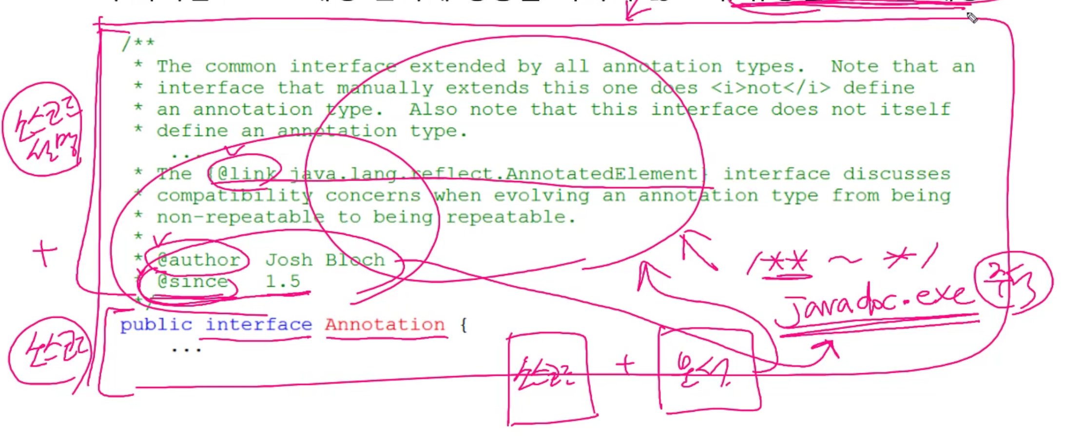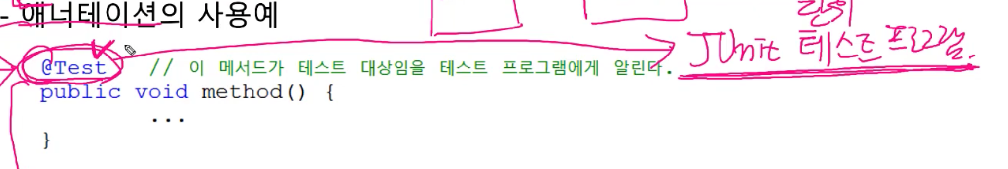 단순히 주석에 포함되면서 프로그램한테 유용한 정보를 제공하는 것이 애너테이션 이다. (@가 포함된 것)