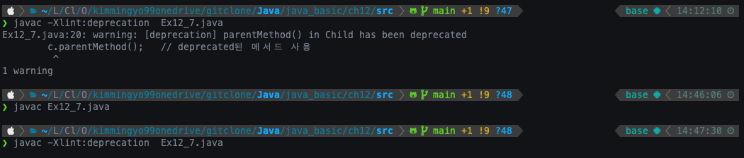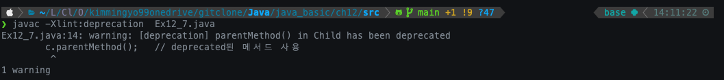 - '-Xlint' 옵션으로 컴파일하면, 경고메시지를 확인할 수 있다.