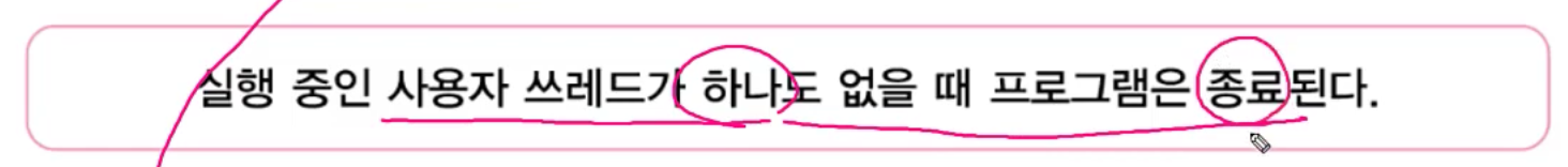프로그램은 사용자 쓰레드가 하나도 없을 때 종료된다.