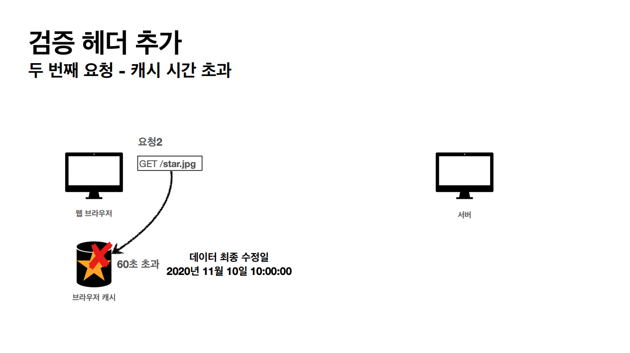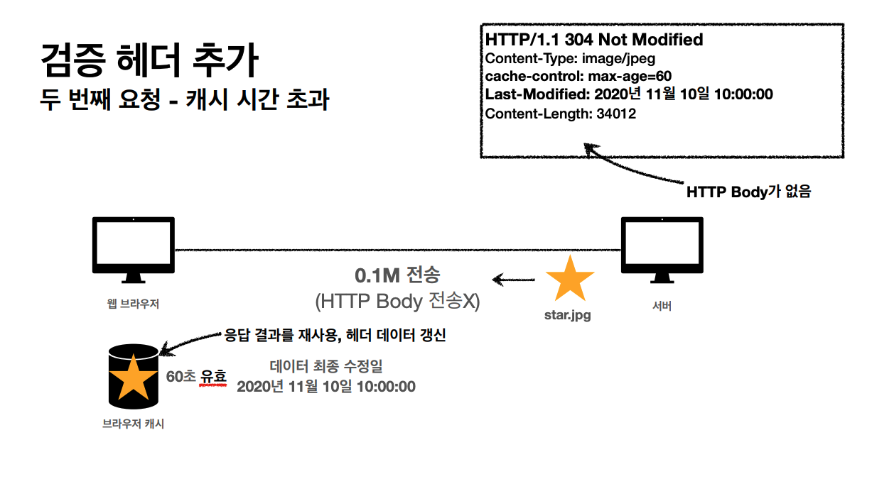- 캐시 유효 시간이 초과해서 서버에 다시 욫어하면 다음 두 가지 상황이 나타난다.