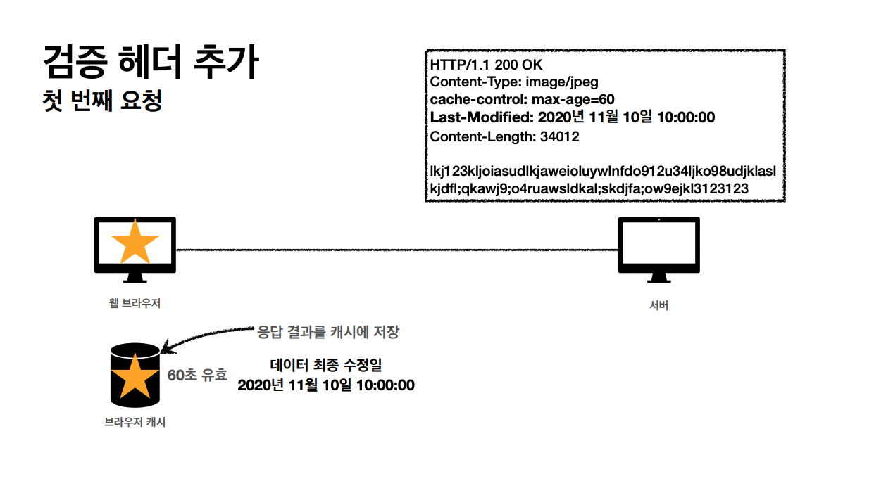 GET/star.jpg를 요청하면, 서버에서 cache-control;max-age=60 이라고 헤더에 캐시유효시간을 지정해서 내려준다.