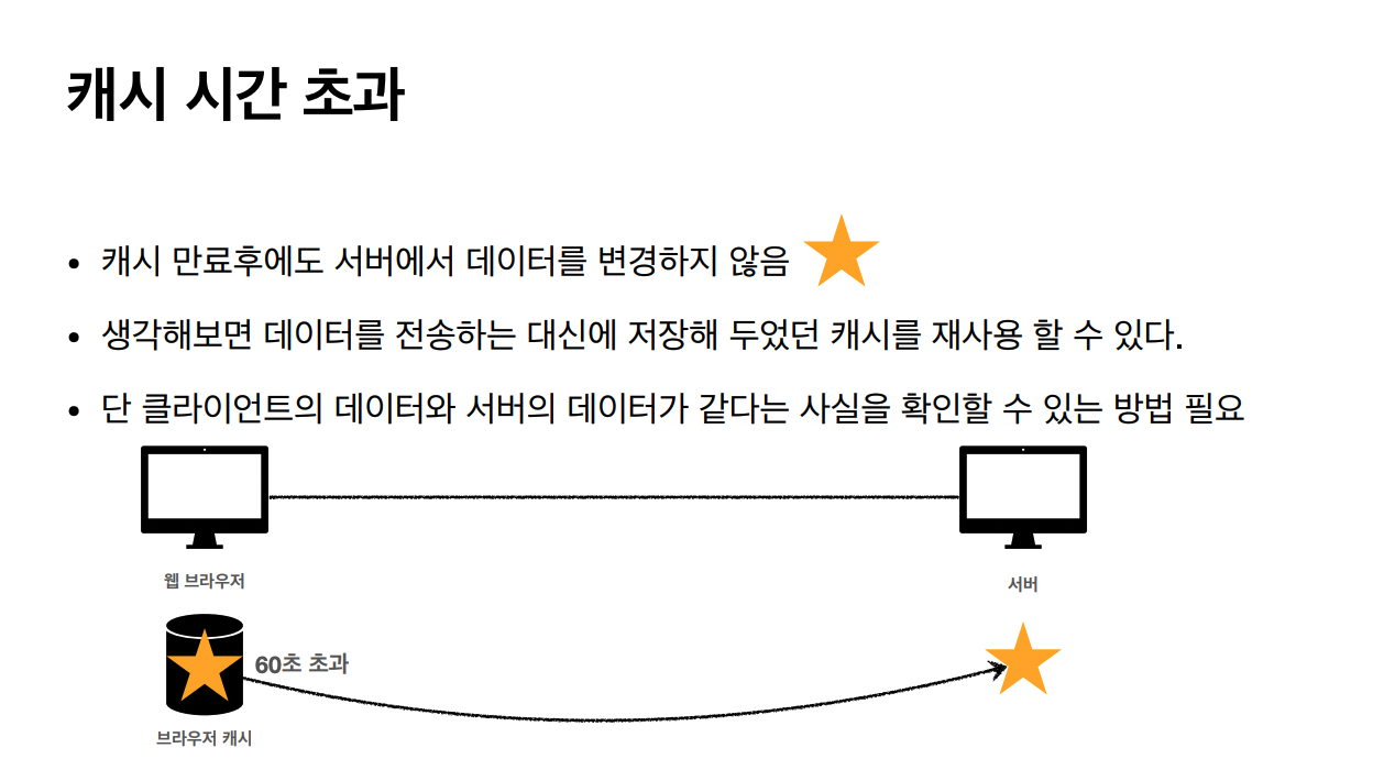 - 캐시 유효 시간이 초과해도, 서버의 데이터가 갱싱되지 않으면