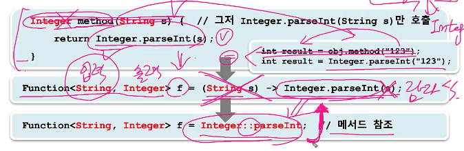 Integer::parseInt 이렇게 메서드 참조를 하는 것이다.