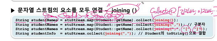 - 문자열 스트림의 요소를 모두 연결 - joining()