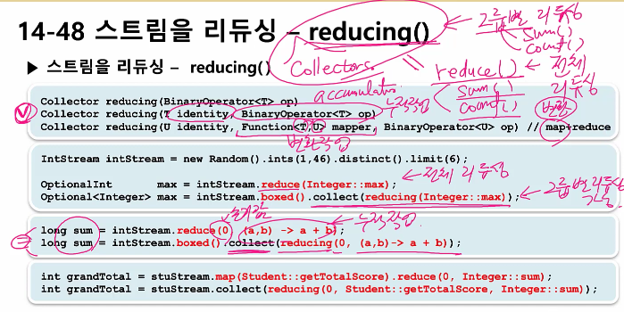 - 스트림을 리듀싱 - reducing()