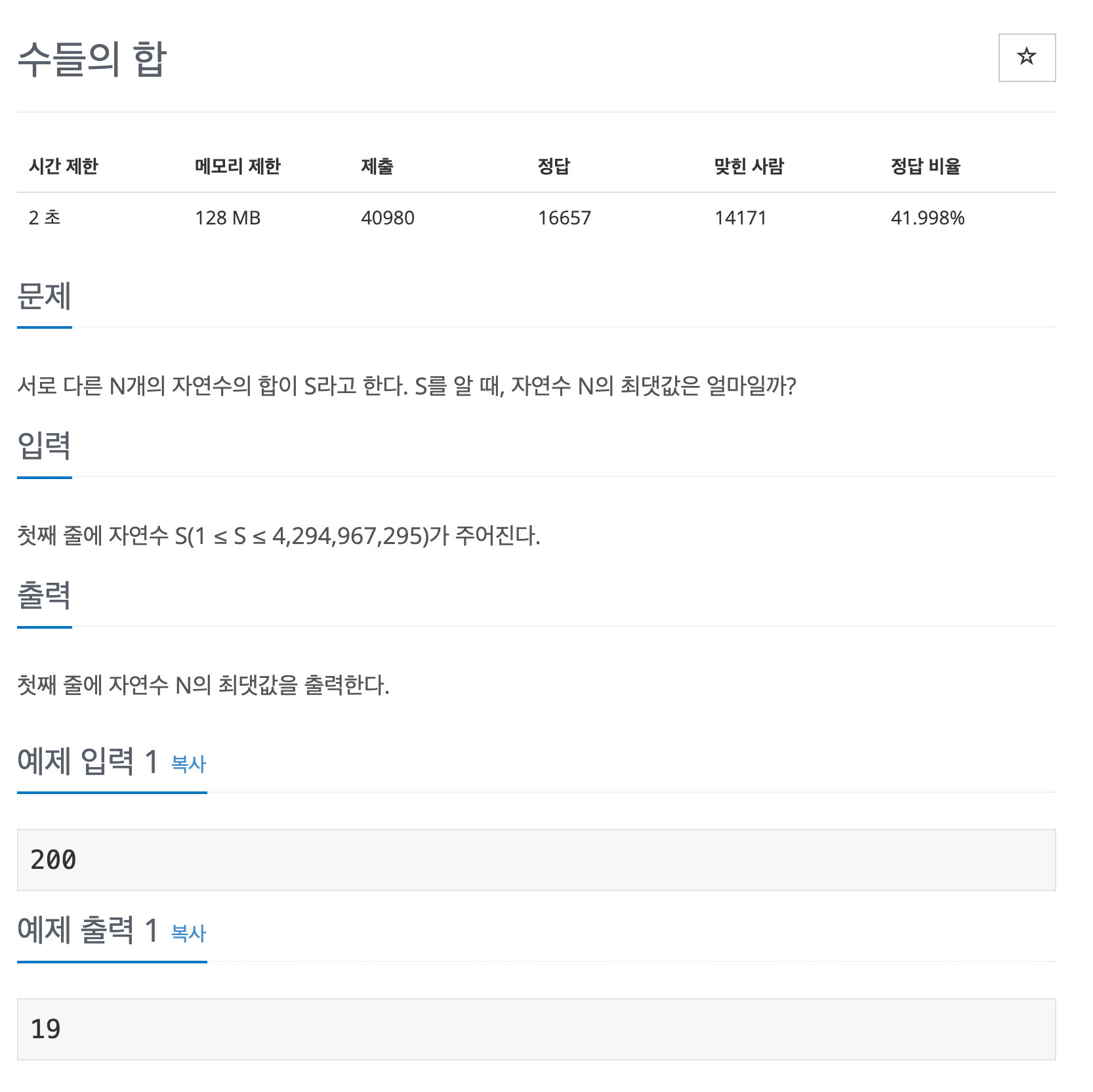 S가 주어졌을 때, N의 최댓값은 얼마인지 구해야 한다.